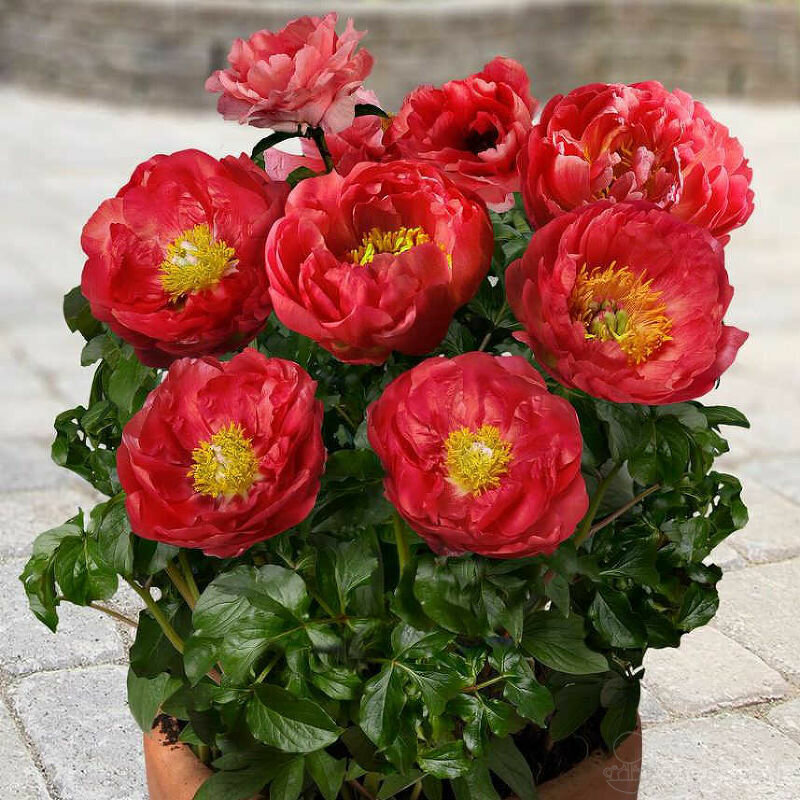Контейнерларда пионларни сотиб олиб, сиз биринчи гуллаш учун кутиш вақтини бутун йилга қисқартирасиз. Ҳар бир контейнер ўғитлар, гўнг, ва кул қўшилиши билан озиқлантирувчи субстрат билан тўлдирилади. Яъни, пионнинг муваффақиятли ўсиши ва ривожланиши учун барча шарт-шароитлар мавжуд.