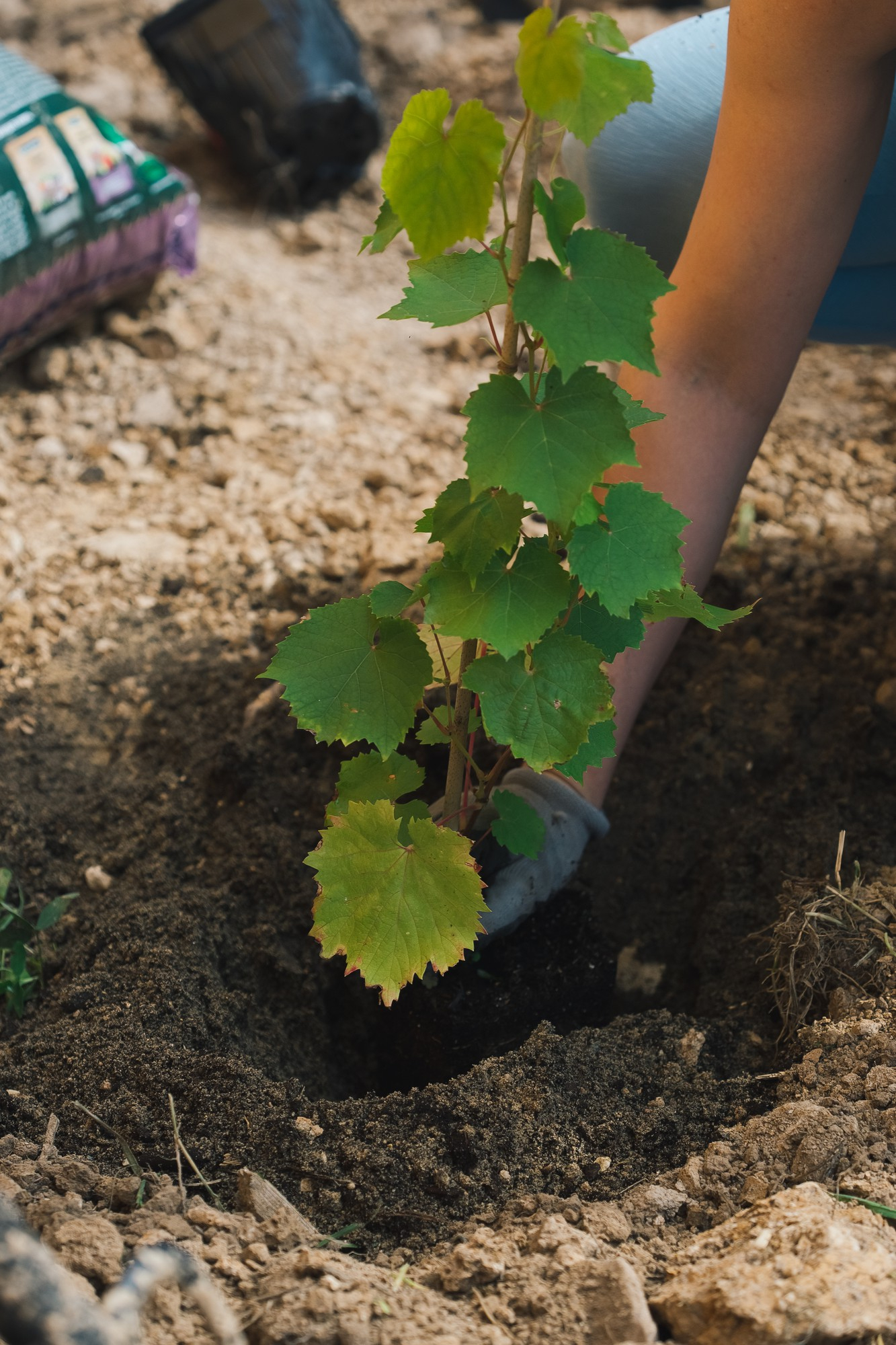 • Ўсимлик тешиклари: 60 см чуқурликда ва 50 см кенглигида бир тешик тайёрланг.Пастки қисмида дренаж қатлами (шағал тош ёки кенгайган лой) ётқизинг.Тешикни бог ътупроғи, компост ва ёғоч кул аралашмаси билан тўлдиринг.